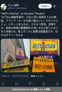 【観劇レポート】Shubert Theatre「Hell’s Kitchen」