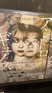 バブル崩壊直後の1993年の世界を男としている人格の片割れはパンデミック後の2023年を女として同時に生きていた。性別も年齢も状況も全く違う男と女・・・しかし元々一つであったアンドロギュノスは互いを求め探し合う。しかし女と男が出会い、二つの世界が重なった時、人は再び神の呪縛と向い合わなければならなくなるのだ。大人数のアンサンブルで作品を構成し、圧倒的なスピード感で見せるショーGEKIならではの世界観で作り上げる音楽劇。