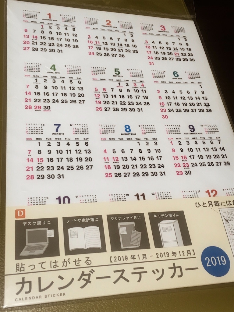 2019年版出たよ!お邪魔な卓上カレンダーを捨てよう。ダイソーの「カレンダーステッカー」がチョー便利。