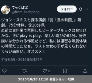 【観劇レポート】ジョン・スミスと探る演劇『劇「鳥の映画」』