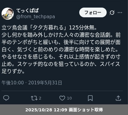 【観劇レポート】立ツ鳥会議「夕夕方暮れる」