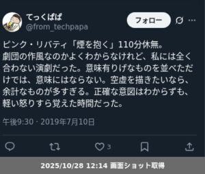 【観劇レポート】ピンク・リバティ「煙を抱く」