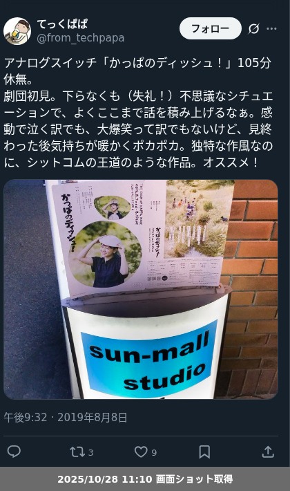 【観劇レポート】アナログスイッチ「かっぱのディッシュ!」