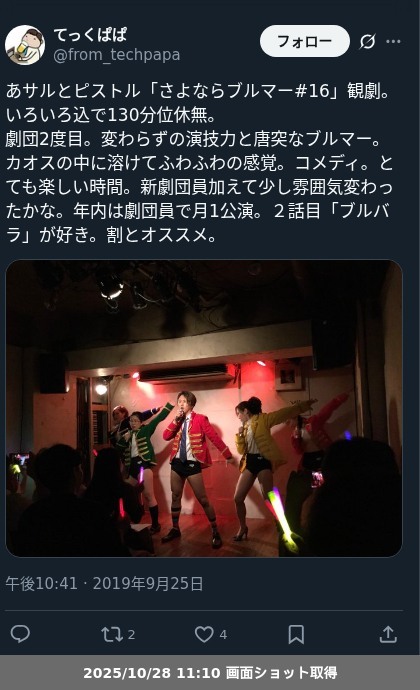 【観劇レポート】あサルとピストル「さよならブルマー#16」