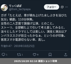 【観劇レポート】ガポ「たとえば、車が跳ね上げた水しぶきを浴びた気分」