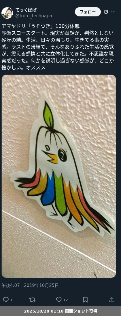 [https://stage.corich.jp/user/206853/done_watch:title=CoRichに投稿]|★★★★☆