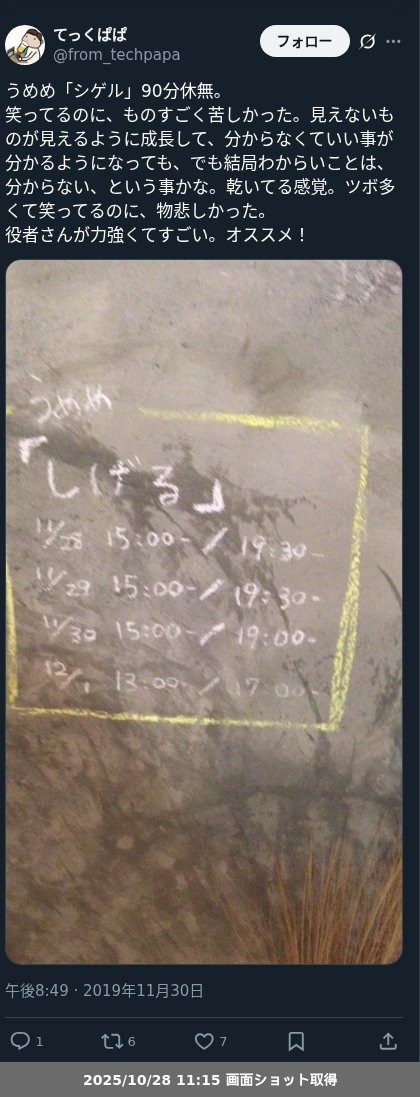 【観劇レポート】うめめ「シゲル」