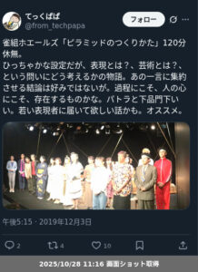 【観劇レポート】雀組ホエールズ「ピラミッドの作りかた」