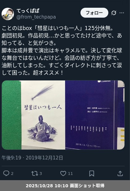 【観劇レポート】ことのはbox「彗星はいつも一人」