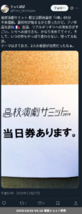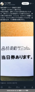 その後、都立駒場高校「てくてくかけてく」を観ていた時、芝居の出演者の方が近くに座っていた。終演後「うちの『あゆみ』も、派手な照明にしようかな」なんて、冗談気味にボソッとつぶやいていたのが聞こえてしまったのだけれども(汗)(笑)。派手さみたいなのに憧れるのも分かるものの、シンプルをシンプルなままに表現する良さが、滲み出ていた作品なので、そんなこと言わないでよ~、と思ってしまった(笑)。