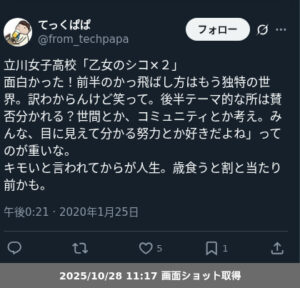 立川女子高校 乙女のシコ×2立川女子高校演劇部○25日11:15~