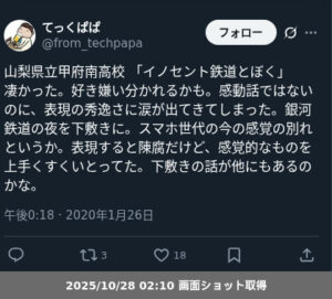 山梨県立甲府南高校 「イノセント鉄道とぼく」