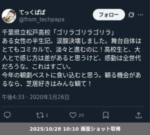茨城県立竜ヶ崎第二高校アニー・ローリー後藤ケイと竜二演劇部25日16:45~