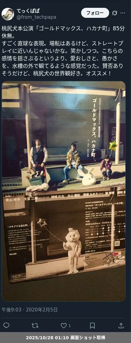 【観劇レポート】桃尻犬「ゴールドマックス、ハカナ町」