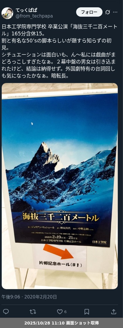【観劇レポート】日本工学院専門学校 卒業公演「海抜三千二百メートル」