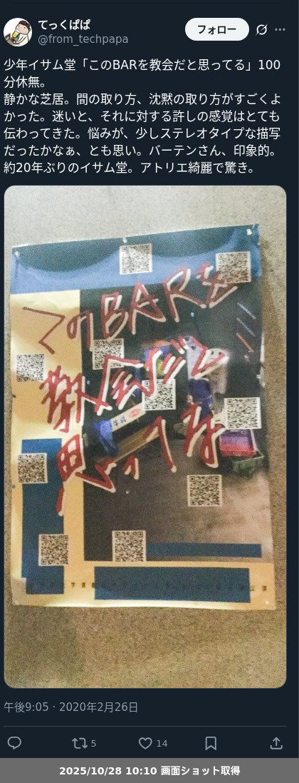 【観劇レポート】学習院大学演劇部 少年イサム堂「このBARを教会だと思ってる」