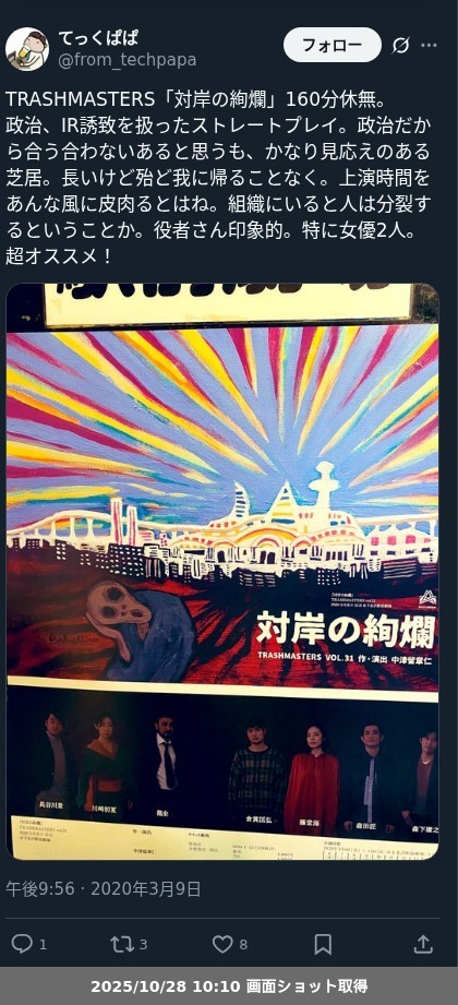 【観劇レポート】TRASHMASTERS「対岸の絢爛」