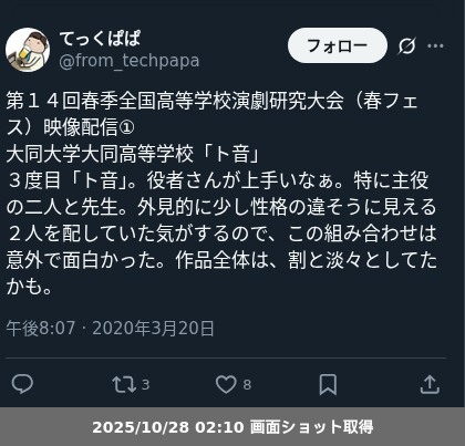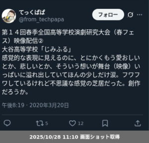 - 11/28【観劇レポ】第78回 千葉県高等学校演劇研究中央発表会(高校演劇 千葉県 県大会 2025年)