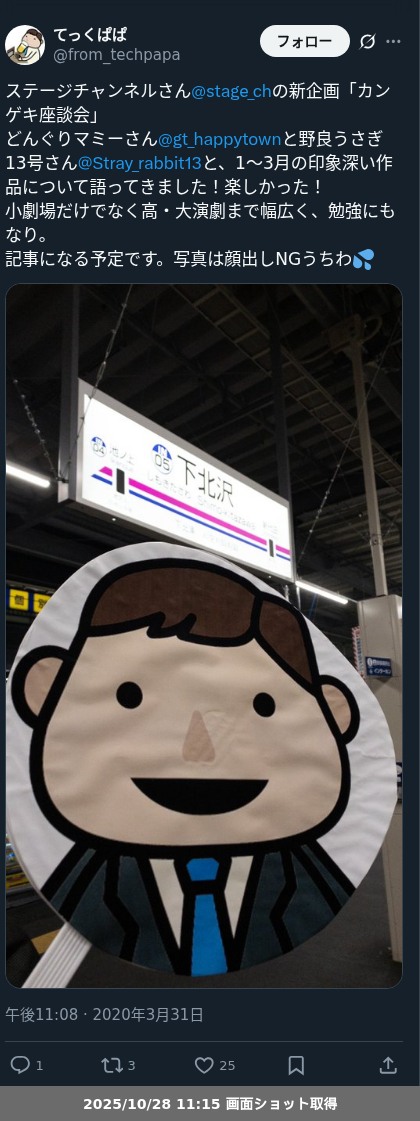 野良うさぎ13号さんとは、結構同じ演目に興味を持つことが多く、観る芝居を選ぶにあたり、tweetを参考にさせていただいてました。