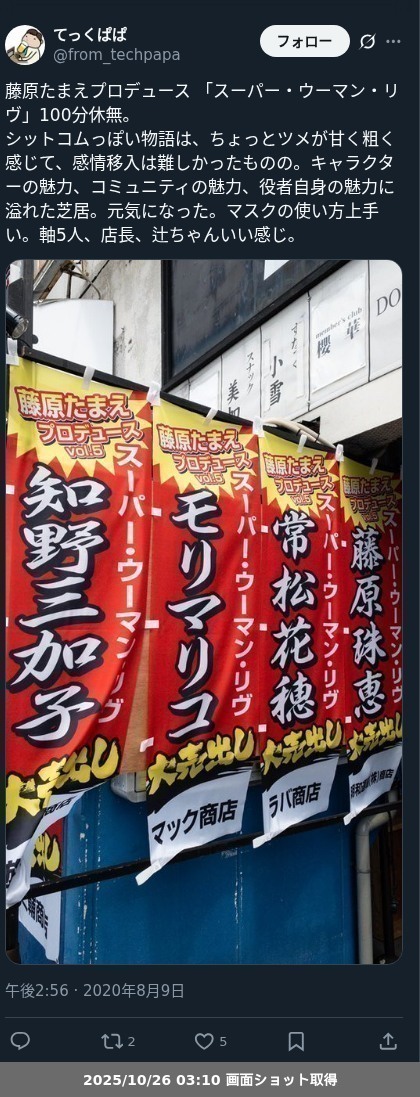 【観劇レポート】藤原たまえプロデュース 「スーパー・ウーマン・リヴ」