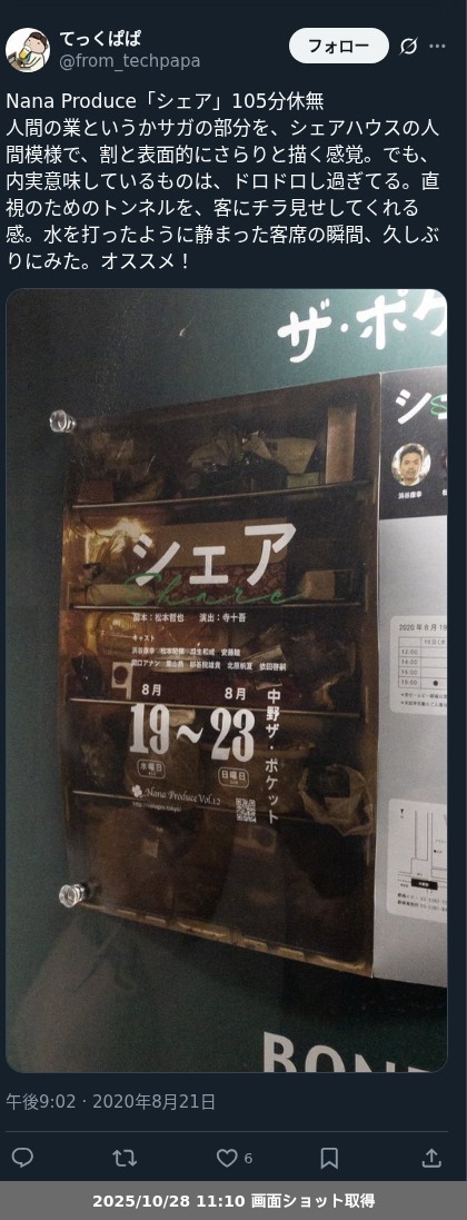 | 観劇日時 | 2020年8月21日 19時00分〜 |
