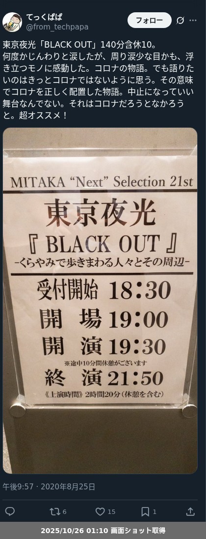 【観劇レポート】東京夜光「BLACK OUT」