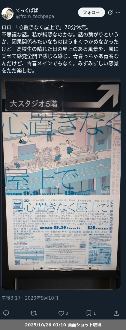 | 観劇日時 | 2020年9月10日 14時00分〜 |
