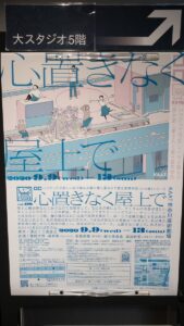 終演後、配られた当日パンフレットを読んでみると、人間関係の相関図が出ていたりして。でも出演していない人の相関も出ているので、「いつ高シリーズ」は、この人物像で物語を描くシリーズなのかな、と思うも、確信が持てず。テーマは「まなざし」という事だけれど。不思議な要素を加えて、感覚的に時間を切り取ったもの。それが作者が言う「まなざし」なのかもしれないと思った。