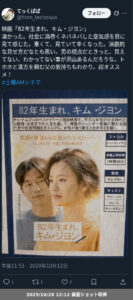 【ネタバレ分離】昨日観た映画、「82年生まれ、キム・ジヨン」の鑑賞レポートです。
