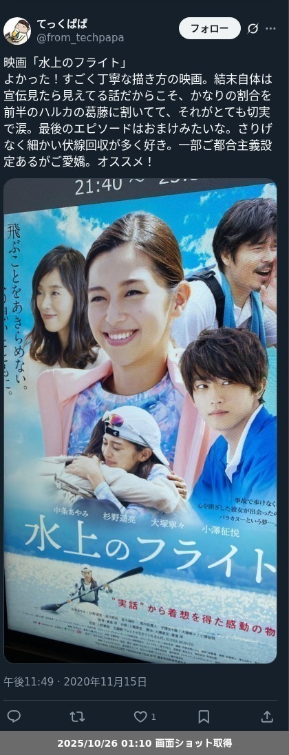 【ネタバレ分離】昨日観た映画、「水上のフライト」の鑑賞レポートです。