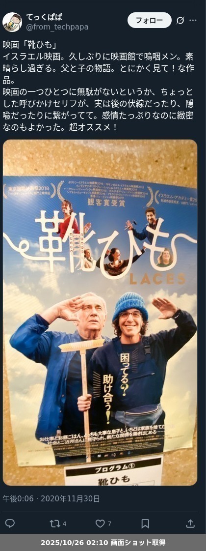 【ネタバレ分離】昨日観た映画、「靴ひも」の鑑賞レポートです。