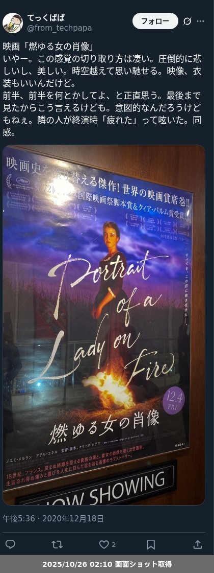 <映画レポート>「燃ゆる女の肖像」