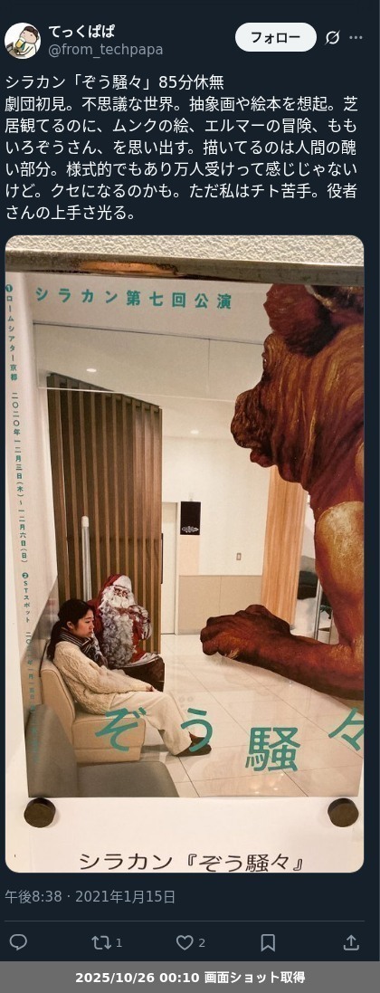 【ネタバレ分離】昨日観た芝居、 シラカン「ぞう騒々」の観劇レポートです。