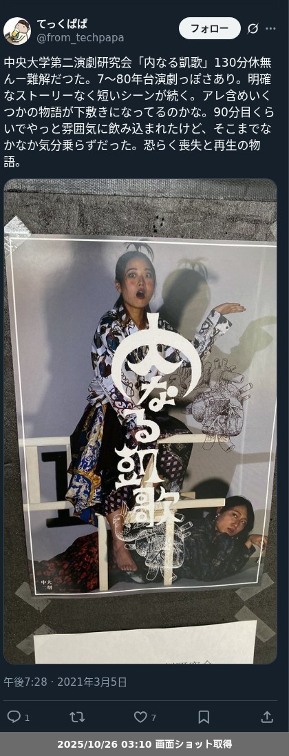 【ネタバレ分離】昨日観た芝居、 中央大学第二演劇研究会「内なる凱歌」の観劇レポートです。