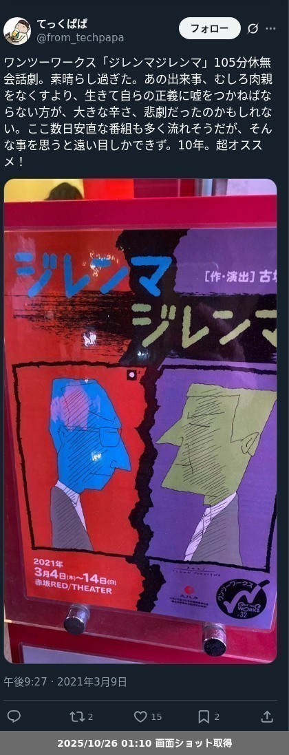 【ネタバレ分離】昨日観た芝居、 ワンツーワークス「ジレンマジレンマ」の観劇レポートです。