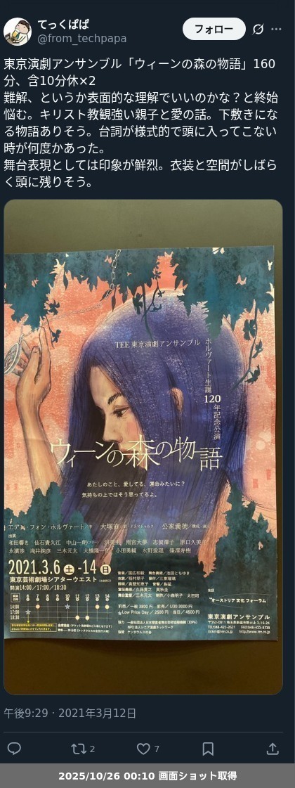 【ネタバレ分離】昨日観た芝居、 東京演劇アンサンブル「ウィーンの森の物語」の観劇レポートです。