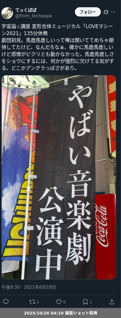 【ネタバレ分離】昨日観た芝居、 宇宙論☆講座「LOVEマシーン2021」の観劇レポートです。
