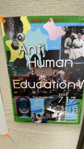 土日はあまり観劇をしない私。この日は横浜周辺なら観劇できるな、と思い、劇場スケジュールを見ていたら、HIKARIに「東京デスロック」の文字を発見。昨年観た「外地の三人姉妹」が良かった。チケットも安いし、まだ手に入ったので、あまり内容を把握せずに予約。Anti Human Education・・・非人間的教育、だろうか。きっと「外地の三人姉妹」のように硬派な演劇なのかな・・・と思ったら、さにあらず。