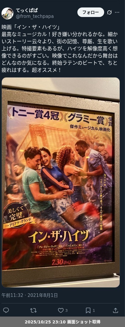 【ネタバレ分離】昨日観た映画、「イン・ザ・ハイツ」の鑑賞レポートです。