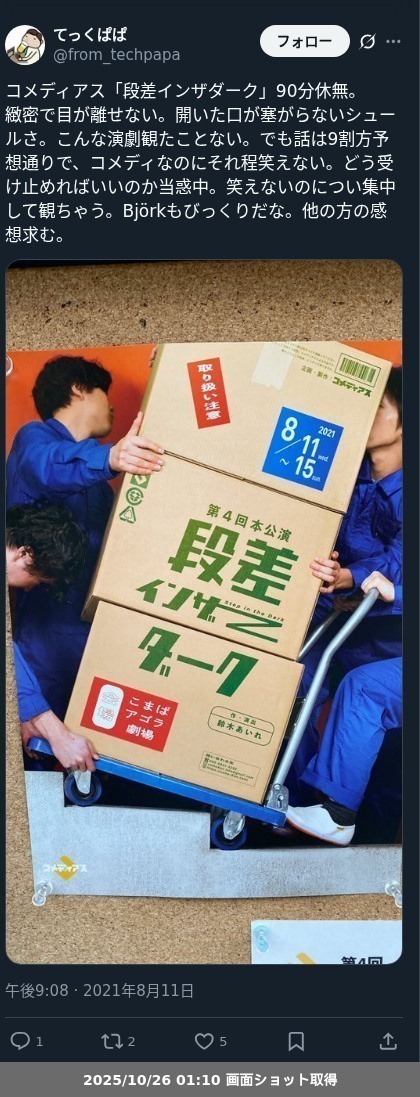 【ネタバレ分離】昨日観た芝居、 コメディアス「段差インザダーク」の観劇レポートです。