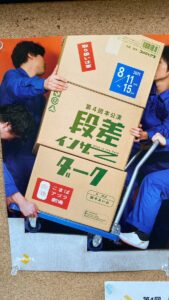 その中での演技が、とても自然。どちらかというと、即興劇的な要素をそのまま持ち込んだように見える。全体のストーリーや、台車を動かす方向、行き詰り方、キーとなるセリフなどは定めつつも、役者さんに自由に演じてもらっているのかもしれない。・・・とこの文章を一度書き切った後、当日パンフレットに、制作過程が書かれているのを読んでみる。劇の制作過程らしきことは書いてなかったけれど、台本がリターンになっているクラウドファンディングをやっている。・・・この芝居の台本、どう書かれているのか?はとても興味がある。