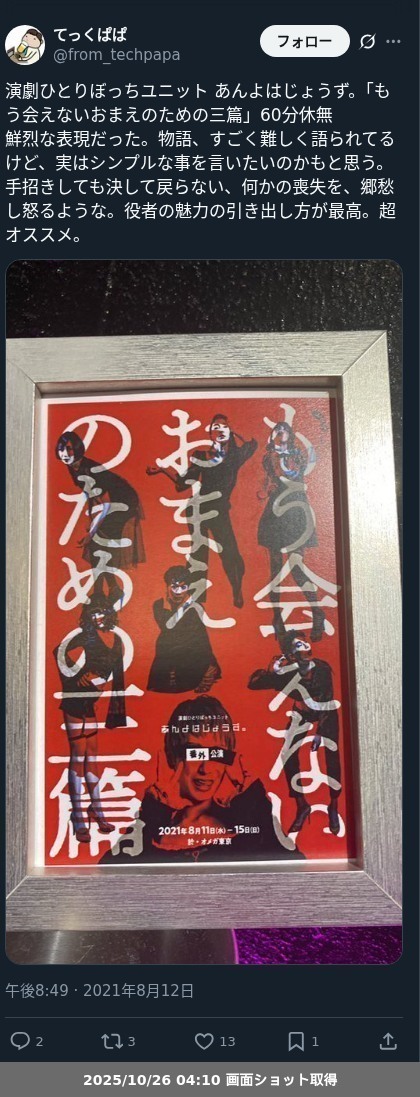 【観劇レポート】あんよはじょうず。「もう会えないおまえのための三篇」