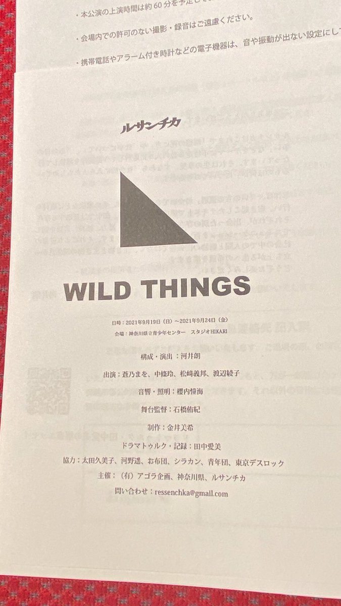 【ネタバレ分離】昨日観た芝居、 ルサンチカ「WILD THINGS」の観劇レポートです。