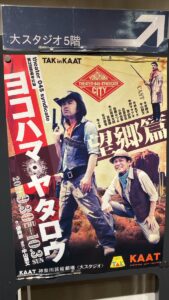 期待しないワケがない。でも正直、期待と同時に不安がある。2019年のヤタロウは、小劇場B1。手を伸ばせば、ふんどし姿のヤタロウの裸体に触れれる近さ。B1の入り口近くの島の、最前列に座ったのを鮮明に覚えている。この芝居の良さは、小さい芝居小屋での緻密な創り込まれ方、だと思っていた。それが、KAAT大スタジオ…。ヤタロウの世界観にはデカすぎるんじゃないか。そう心配したのだけれとも。…完全に失礼で、杞憂な心配だった。目の前に現れたのは、KAAT大スタジオを存分に使って暴れ回るヤタロウと、展開されるヤタロウの世界観。荒唐無稽なハードボイルド。酔いしれた。小屋の大きさなんて関係なかった。2019年のチラシとよくよく見比べてみると、スタッフ陣、照明は阿部康子、音響は岩野直人、美術は袴田長武、舞台監督は村上洋康、演出は中山朋文で、今回も変わっていない。