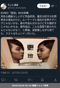 【ネタバレ分離】昨日観た芝居、 KUNIO「更地」の観劇レポートです。