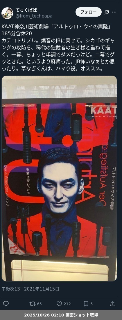 【ネタバレ分離】昨日観た芝居、 KAAT神奈川芸術劇場「アルトゥロ・ウイの興隆」の観劇レポートです。