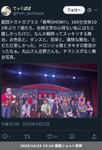 | 日時場所 | 2022/01/21(金)~2022/01/30(日) 浅草東洋館(浅草フランス座演芸場)(東京都) |