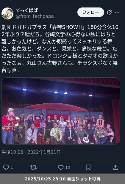 【ネタバレ分離】昨日観た芝居、 劇団ドガドガプラス「春琴SHOW!!」の観劇レポートです。