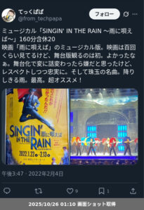 【ネタバレ分離】昨日観た芝居、 ミュージカル「SINGIN' IN THE RAIN ~雨に唄えば~」の観劇レポートです。