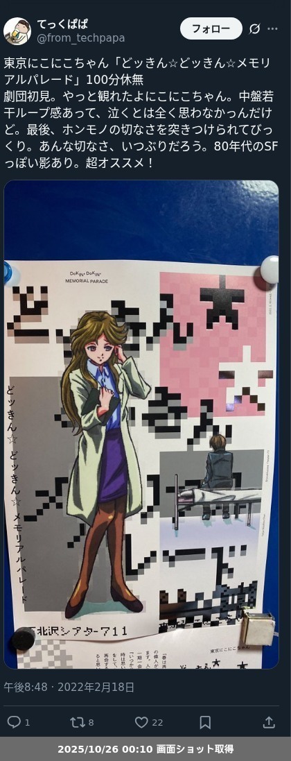 【ネタバレ分離】昨日観た芝居、 東京にこにこちゃん「どッきん☆どッきん☆メモリアルパレード」の観劇レポートです。